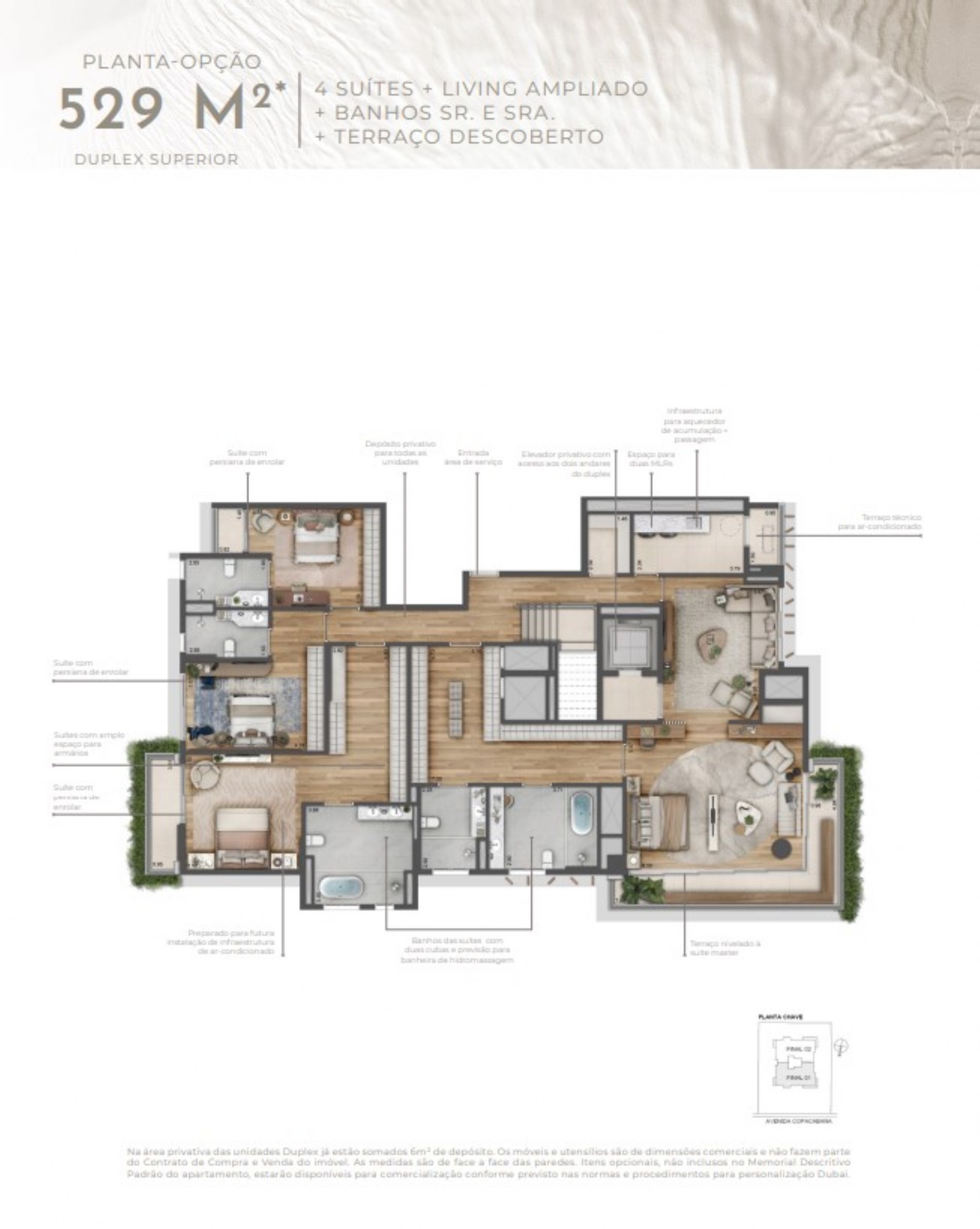 Detalhes: Apts. 273m² à 529m², 4 Suítes. 4 e 5 Vagas