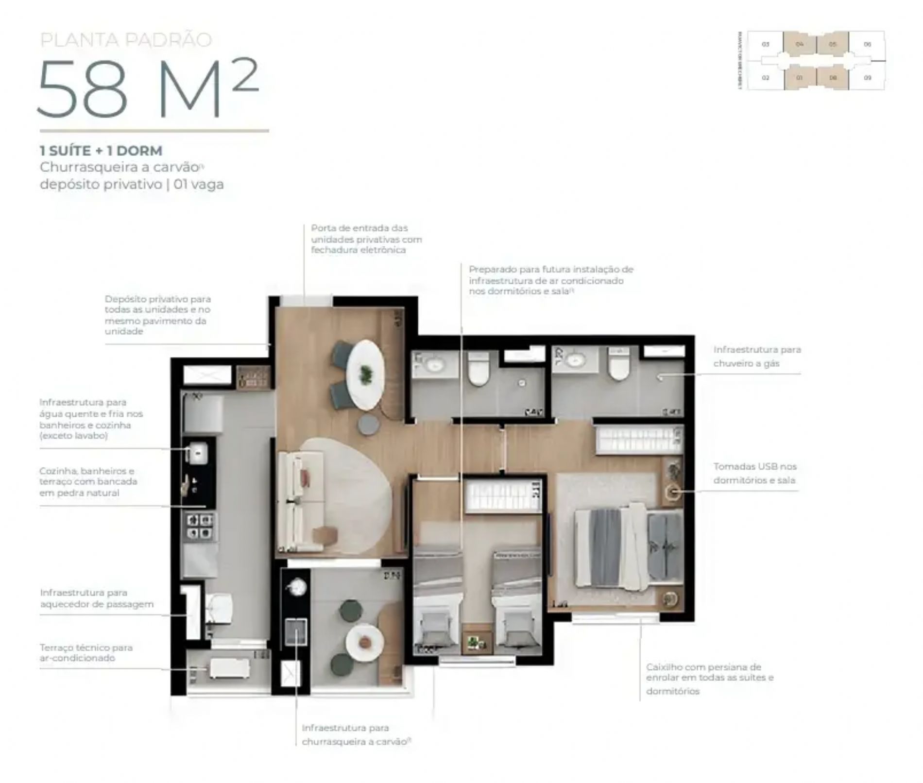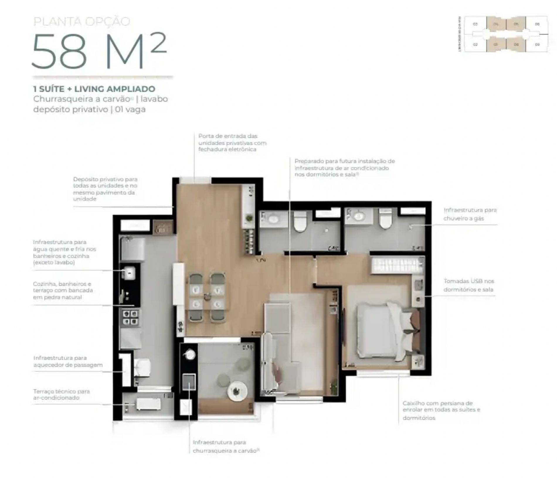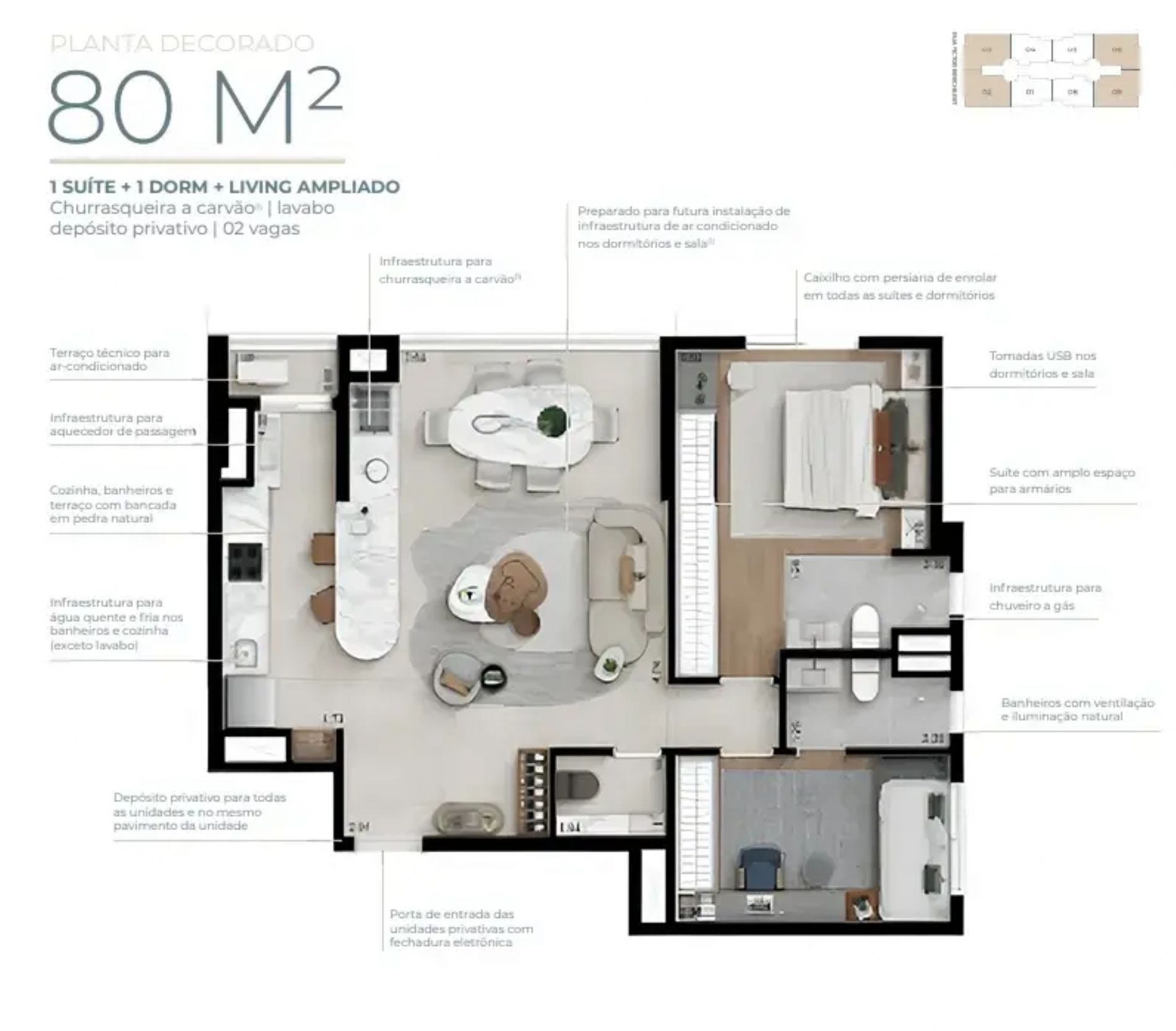 Detalhes: Apts. 58m² à 80m², 2 e 3 dorms. 1 Suíte 2 Vagas